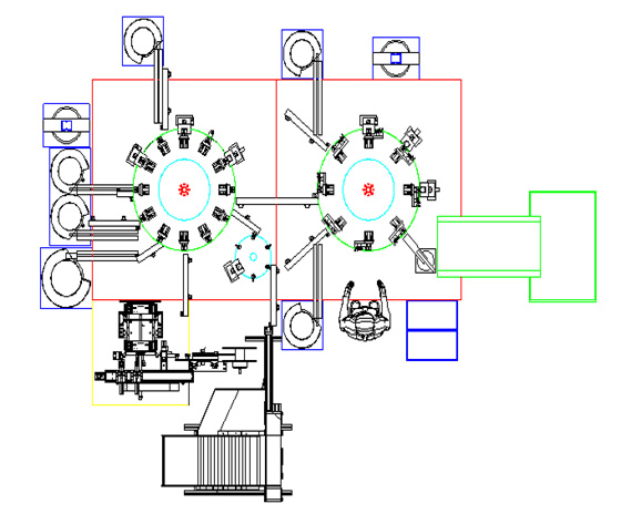 全自动组装机通过各零件、送料、判断、抓取、装配、打胶、自动切割、包胶布、自动卸料等工艺对产品进行装配。有漏装检测、错装检测等。